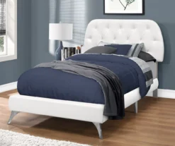 White Tufted Faux Leather Twin Upholstered Platform Bed
