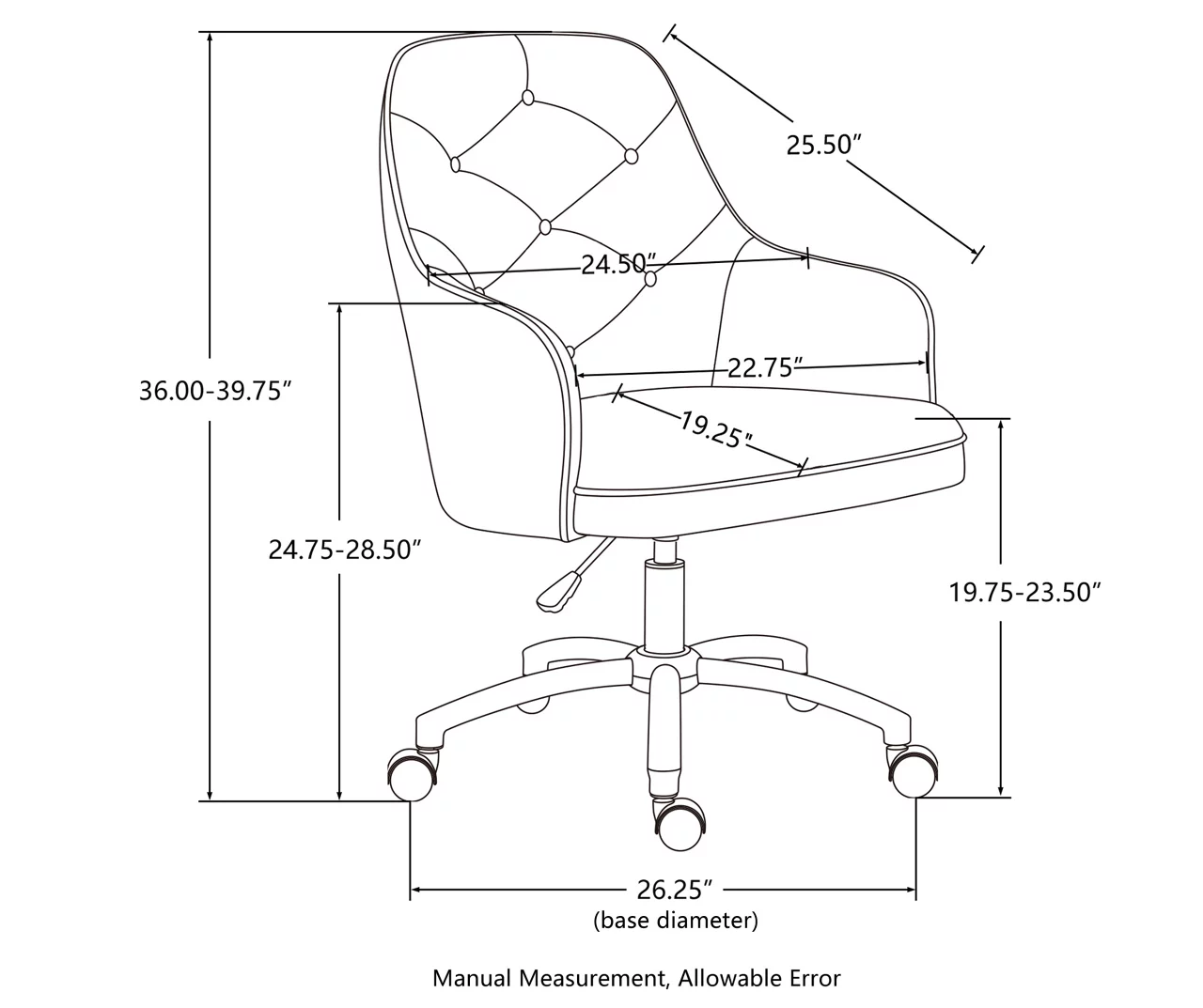 - Product dimensions: 24.5″L x 25.5″W x 39.75″H