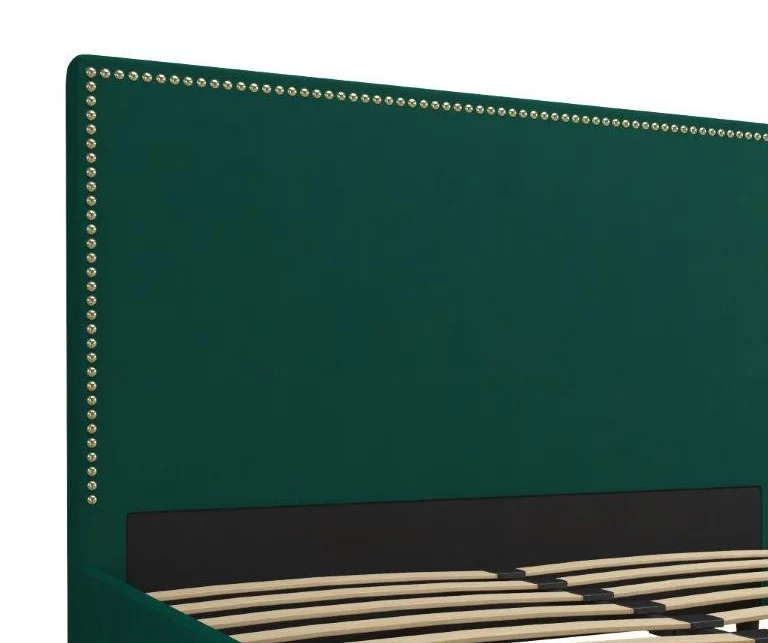 The CosmoLiving Audrey upholstered bed is so cute it hurts. Bring out your glam side with a gold headboard nailhead trim and black gold dipped solid wood legs. Did someone say dripping in finesse? What’s even better, the bed frame is fully upholstered in velvet as the sturdy wood frame includes a bentwood slat system for optimal support, so there’s no need to buy any additional box spring or foundation. Looking to snag yourself a bed frame that makes a statement? Get the CosmoLiving Audrey upholstered bed and nail your velvety décor game.