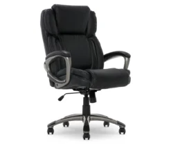 From a trusted brand committed to offering uncompromising quality, comfort and style, the Serta Big and Tall Executive Office Chair is not your average office chair. This heavy-duty office chair is made with a more generous design to support taller and larger body types as big and tall commercial-grade components ensure stability and durability to stand up to wear and tear. The layered body pillows on this ergonomic office chair provide cushioned comfort, to help alleviate discomfort caused by sitting throughout your workday. Height and tilt adjustments let you position this executive chair to improve body alignment, while arm controls provide optimal placement for your hands, wrists and forearms. The contoured lumbar zone is also adjustable to relieve stress on your lower back. Finished in Puresoft faux leather material, this Serta office chair is low-maintenance and looks great in any office environment.